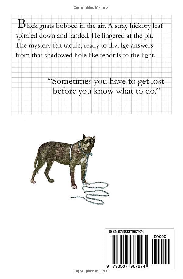 A couple of black gnats bobbed in the air. A stray hickory leaf spiraled down and landed. He lingered at the pit... because the mystery felt tactile, ready to divulge answers from that shadowed hole like tendrils to the light.
